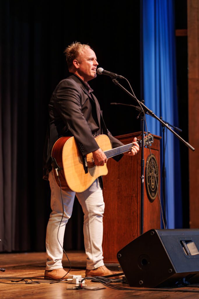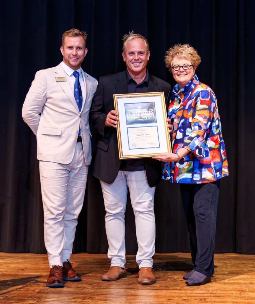 Singer-songwriter David Glenn was honored with Chowan University’s Distinguished Alumni Award, presented by Dr. Rosemary Thomas, President, and Harri Lovett, Director of Development.