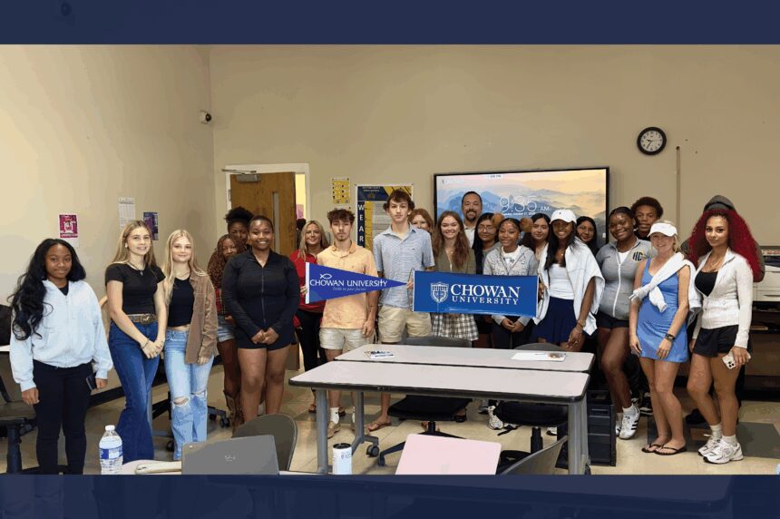 During the visit, students were introduced to Chowan’s newest scholarship opportunity—the Spirit Scholars Program. This initiative combines a student’s merit-based award with an additional scholarship based on location, providing greater financial support for local students. Many recipients will see total scholarship packages exceed $50,000 in academic awards. Learn more at chowan.edu/scholarships.