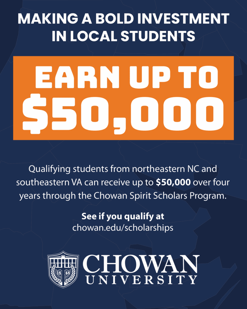 “We are excited to continue finding ways to make Chowan University an affordable private college option for students across northeastern North Carolina and southeastern Virginia,” said Taylor Furlough, Director of Admissions. “Chowan offers an exceptional environment for young people to grow and become future leaders in their communities. The Spirit Scholars Program further demonstrates the University’s deep commitment to serving this region.”