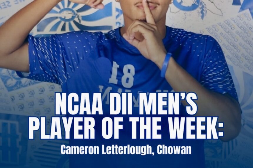 Murfreesboro, N.C. — Oct. 17, 2025 — Chowan University is proud to announce that freshman forward Cameron Letterlough has been named D2 Men’s Player of the Week for October 9-15, as featured in TopDrawerSoccer’s “Men’s D2, D3, NAIA Weekly Recap.”