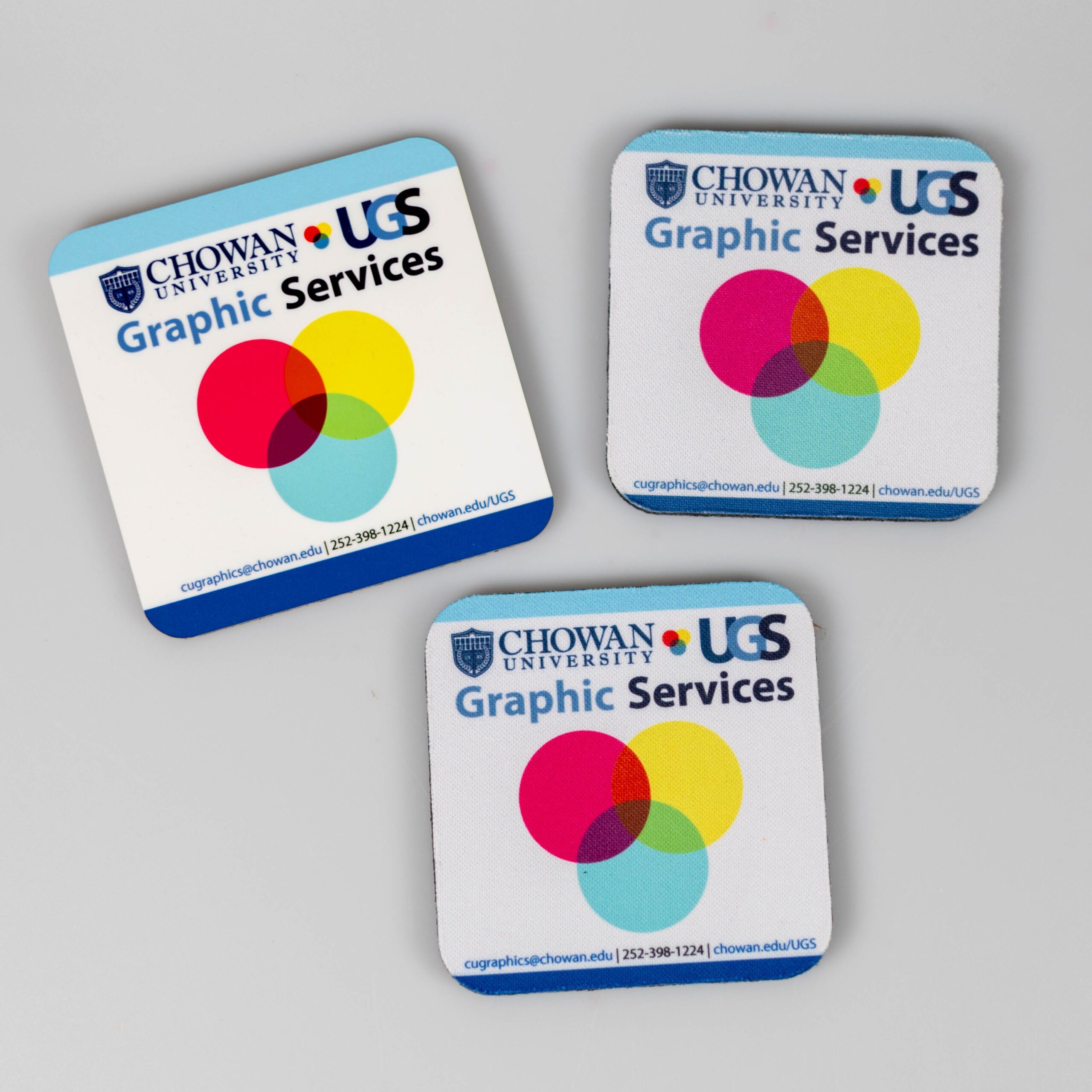 | Coasters | Full color, square or round, cork or fabric backed | 4 |